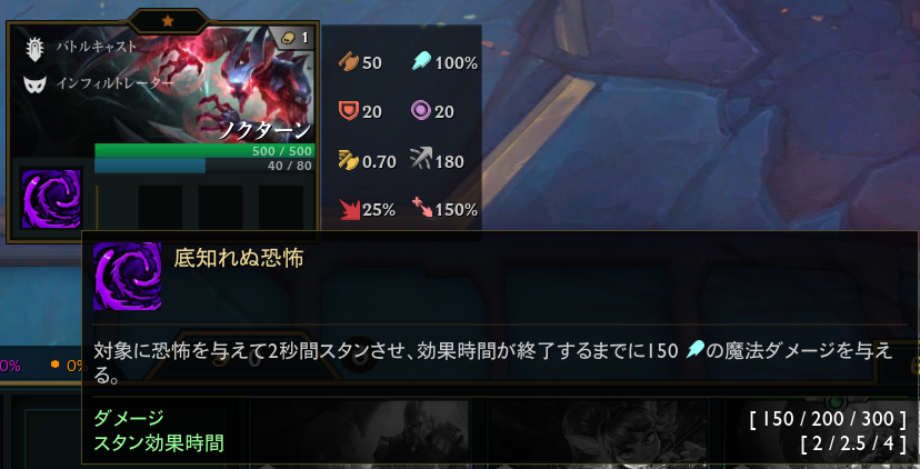 セット2はTier5でゲームを決めるチャンピオンの1人だったわけですが、セット3はTier2でありスキルの効果も控えめ。ただ、攻撃力を奪う能力を持っているため、うまく敵のキャリーを攻撃出来るとチームに貢献できそうです。